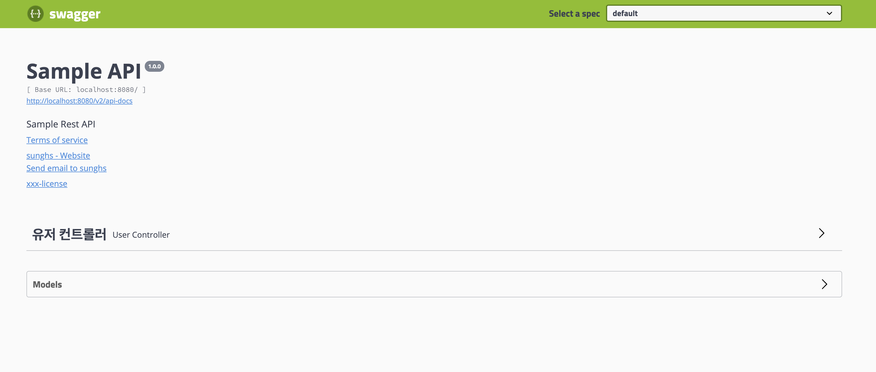 별다른 설정을 하지 않았으면 진입 주소는 http://localhost:8080/swagger-ui.html 이다.