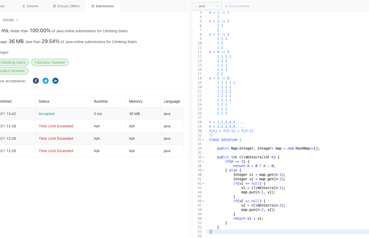 문제 링크 : https://leetcode.com/problems/climbing-stairs/