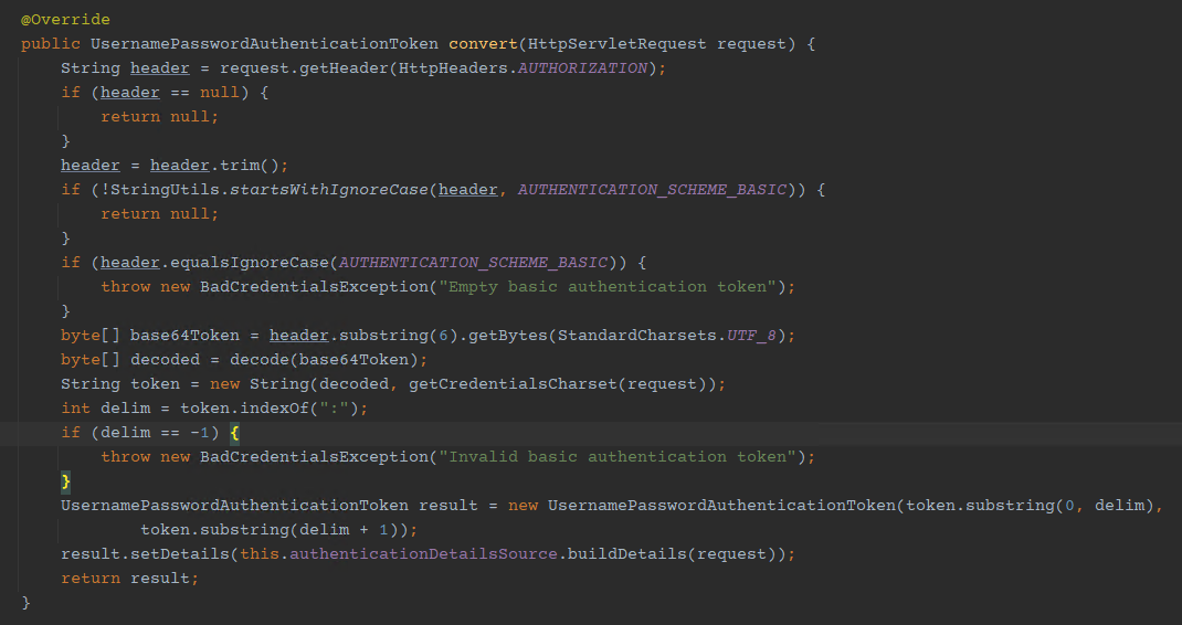 Authorization 헤더에 값이 있으면 그걸 앞 6자리를 BASE64로 말아 UsernamePasswordAuthenticationToken 에 세팅합니다.