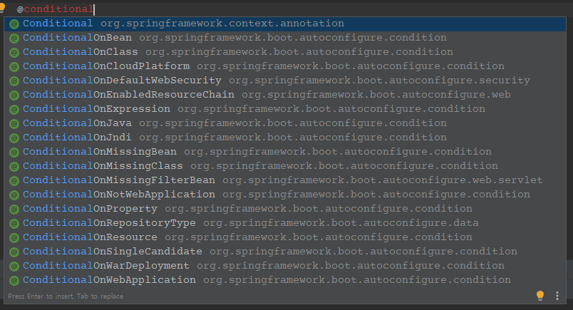 @Conditional 어노테이션인데, 기본적으로 몇가지가 만들어져 있습니다.