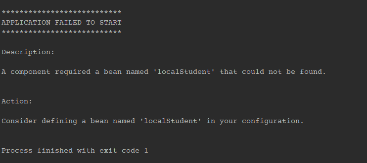 @Conditional(LocalPropertyCondition.class) 에서 LocalPropertyCondition 클래스의 matches 메소드가 false를 반환했을 테니 해당 bean 생성은 안됩니다.