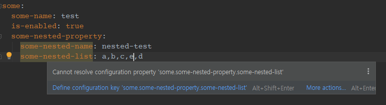 @ConfigurationProperties("some") 이니 application.yml에 작성해보겠습니다.