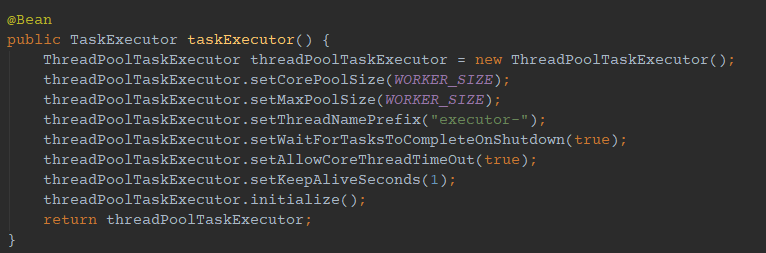 - WORKER_SIZE = ThreadPoolTaskExecutor core,max size 로 10입니다.