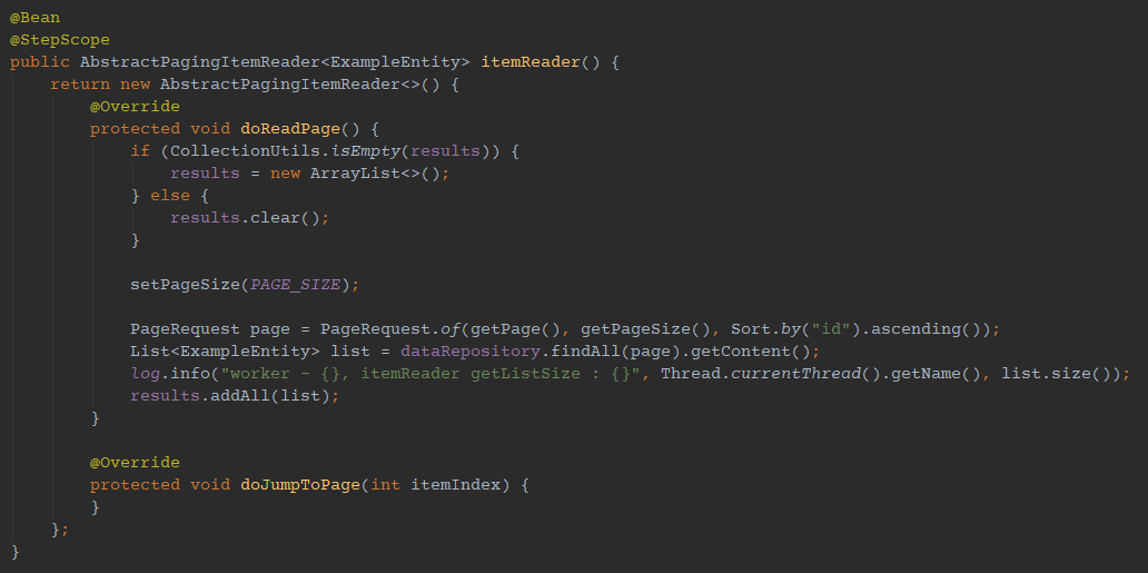 JpaPagingItemReader 도 있지만, 제 의도대로 정확히 돌리기 위해 AbstractPagingItemReader 를 직접 구현하여 돌려보겠습니다.