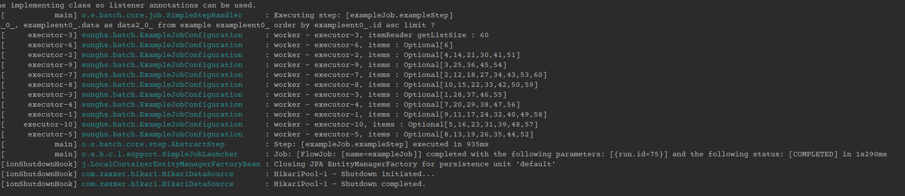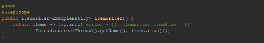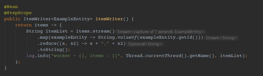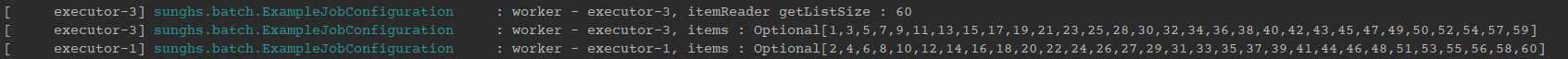 worker-4 -> 30,31,32 ... 60실제로 ItemWriter에서 id만 추출해서 돌려보겠습니다.
