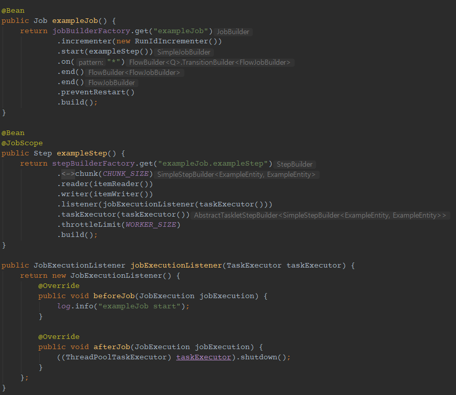 따라서, Connection Pool Resource와 Thread Worker 만 충분하다면, 하나의 Chunk가 단일 워커의 Reader-Processor-Writer 구조가 아닌,하나의 Reader가 CHUNK_SIZE 이하 혹은 그만큼 가져온 itemList 를 여러 Worker 의 Processor-Writer 구조로 처리 될 수 있는 것 입니다.