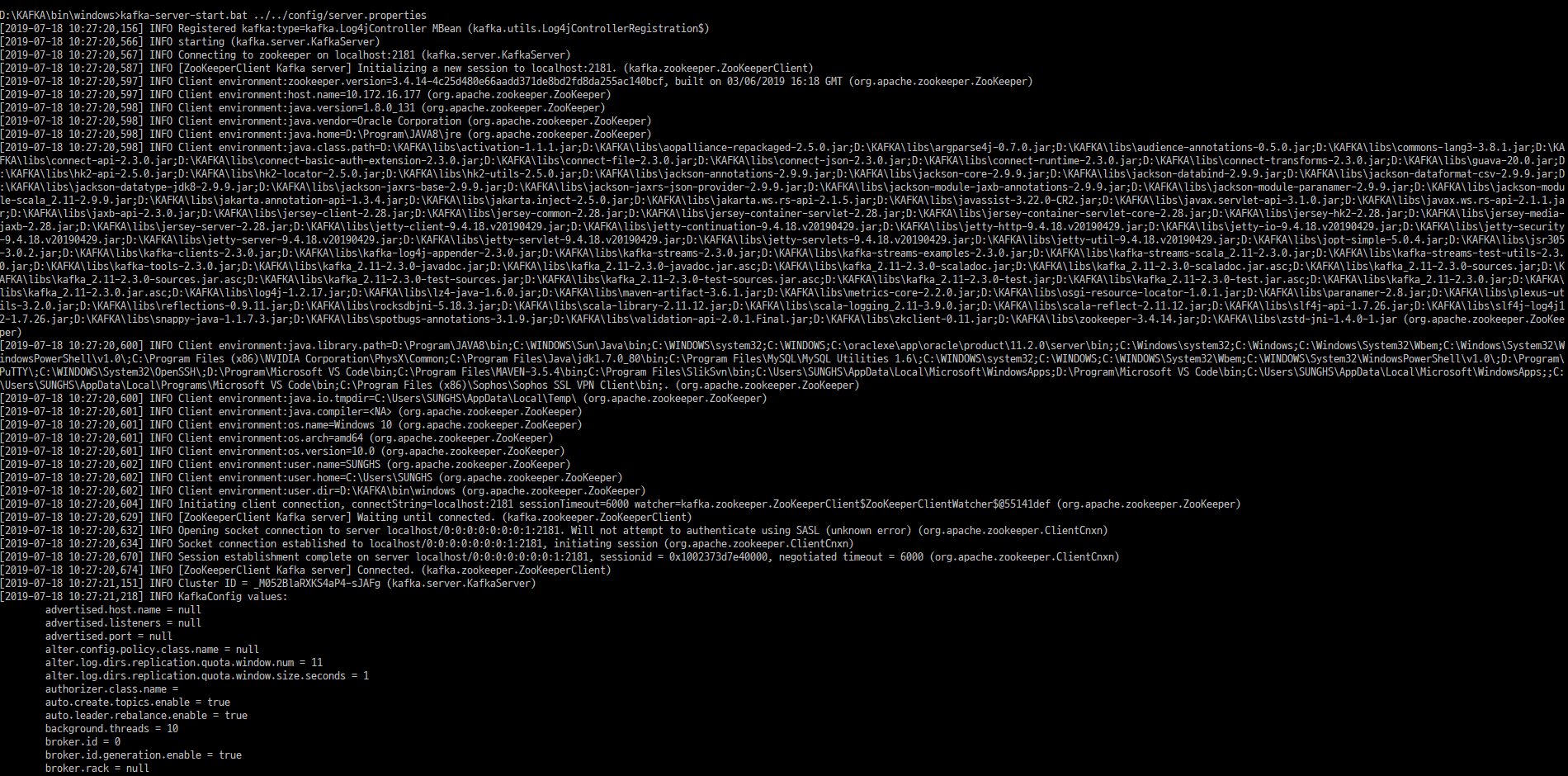 windows bat파일 위치에서 kafka-server-start.bat ../../config/server.properties